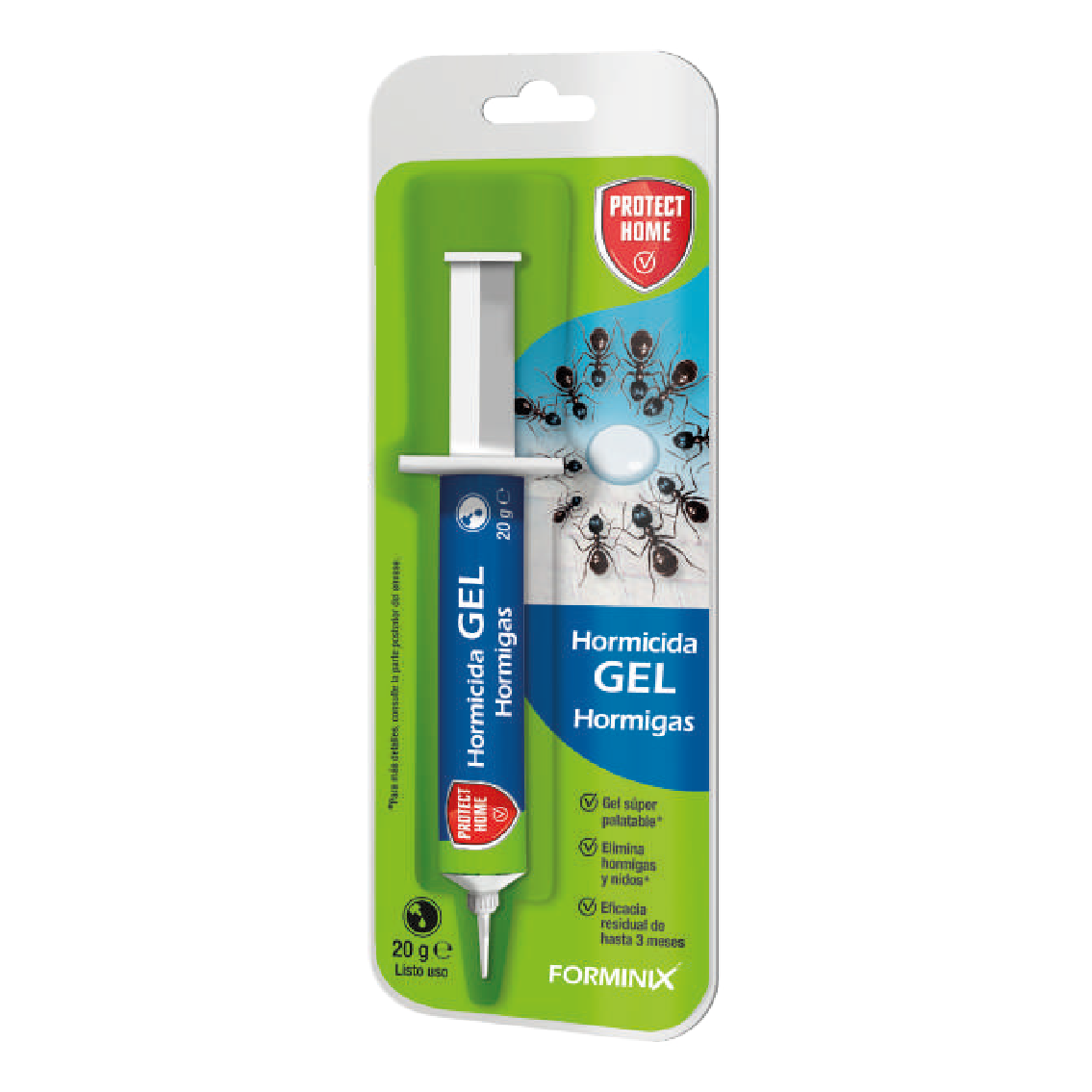 Forminix Jeringa es un insecticida de acción rápida eficaz contra las principales especies de hormigas, altamente atractivo también actúa dentro del hormiguero. Las hormigas obreras Atraídos por el gel se alimentan de él y lo transportan al nido, lleva a la eliminación de toda la colonia.